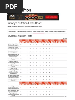 Wendys Nutrition Pdf Hamburgers Drink
